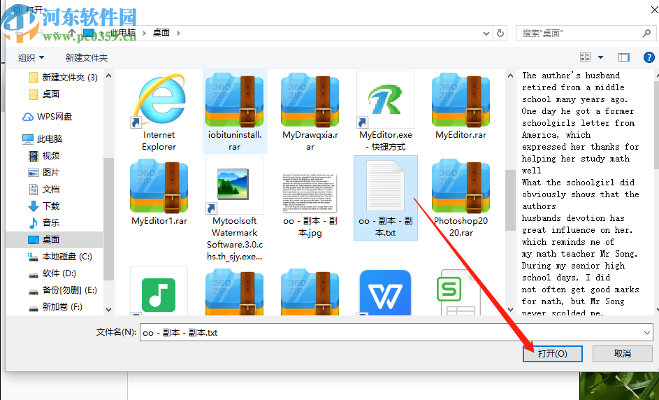 3.点击文件夹图标之后在打开的选择文件界面中,我们选中想要分割的TXT文件之后点击右下角的打开按钮即可。