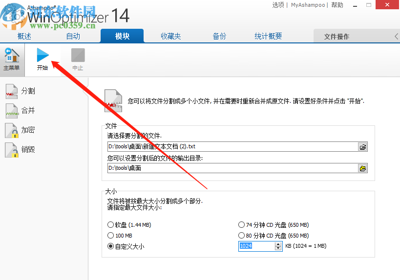 6.选择好分割方式之后,点击界面左上角的开始按钮就可以开始分割文件的操作了。