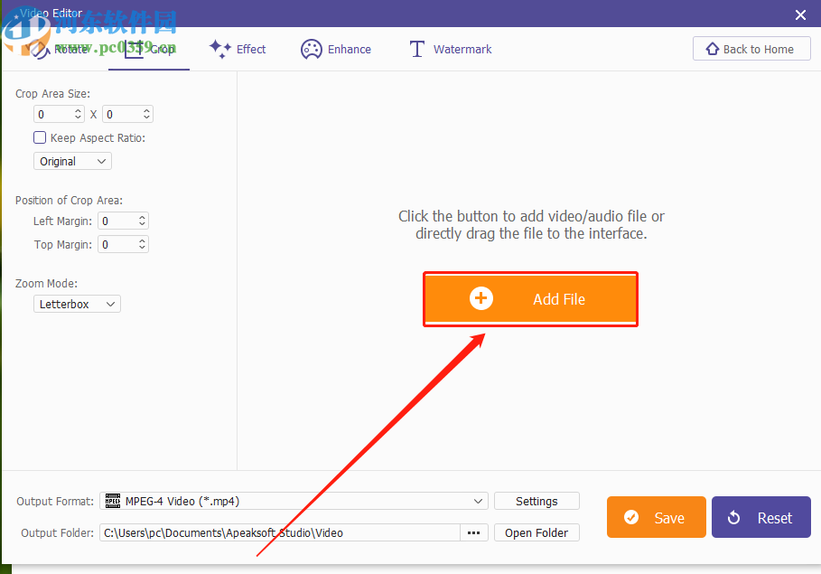 2.进入到裁剪功能界面之后,我们点击界面中的Add File这个添加文件按钮,点击之后准备添加想要处理的视频。