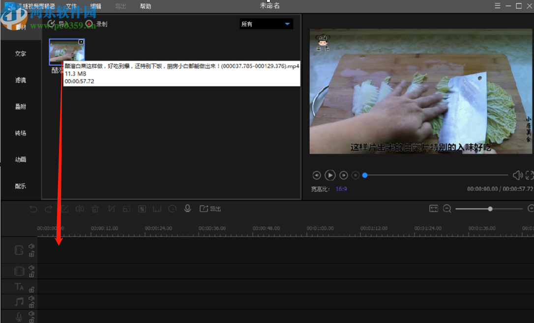 4.点击这个打开按钮之后我们在软件界面中就可以看到添加进来的视频文件了,然后我们点击将它拖动到下方的操作台当中。
