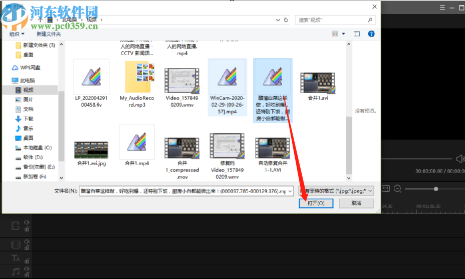 3.点击加号之后下一步在出现的选择文件界面中,选中目标视频文件之后,点击下方的打开按钮就可以了。
