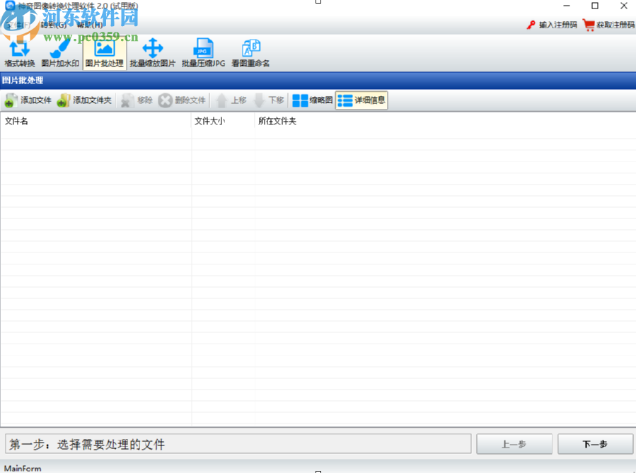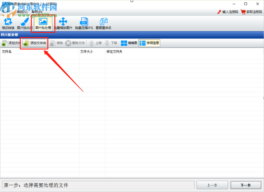 1.首先第一步我们点击打开软件之后,在界面中选中图片批处理功能,然后点击添加文件夹按钮。
