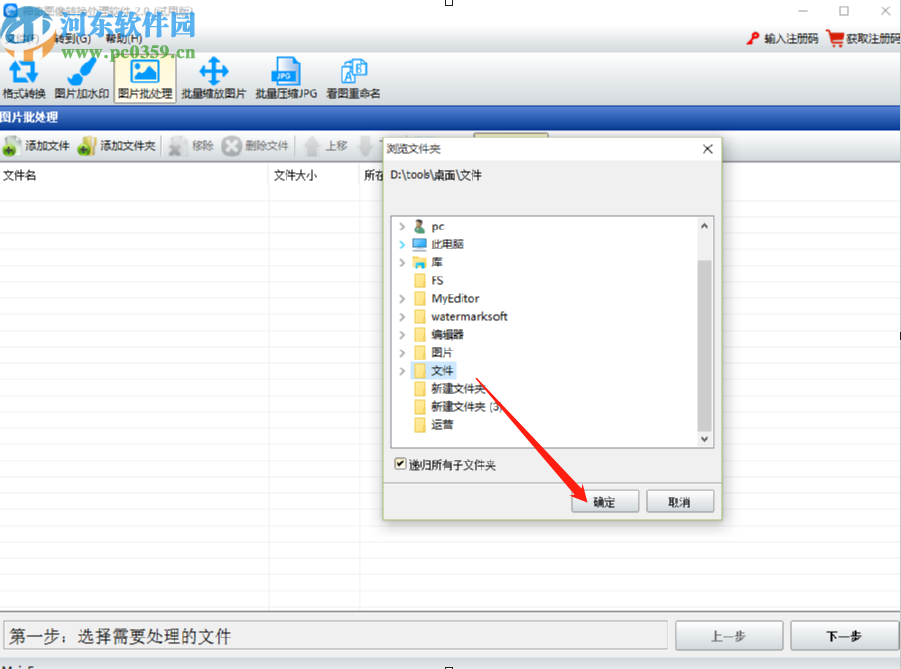 2.点击添加文件夹按钮之后,在出现的浏览文件夹界面中,找到想要处理的图像所在的文件夹选中之后,点击右下角的确定按钮。