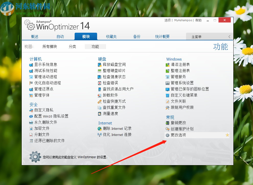 2.将界面切换到模块之后,我们找到界面右下角的更改选项这个功能,然后点击进去。