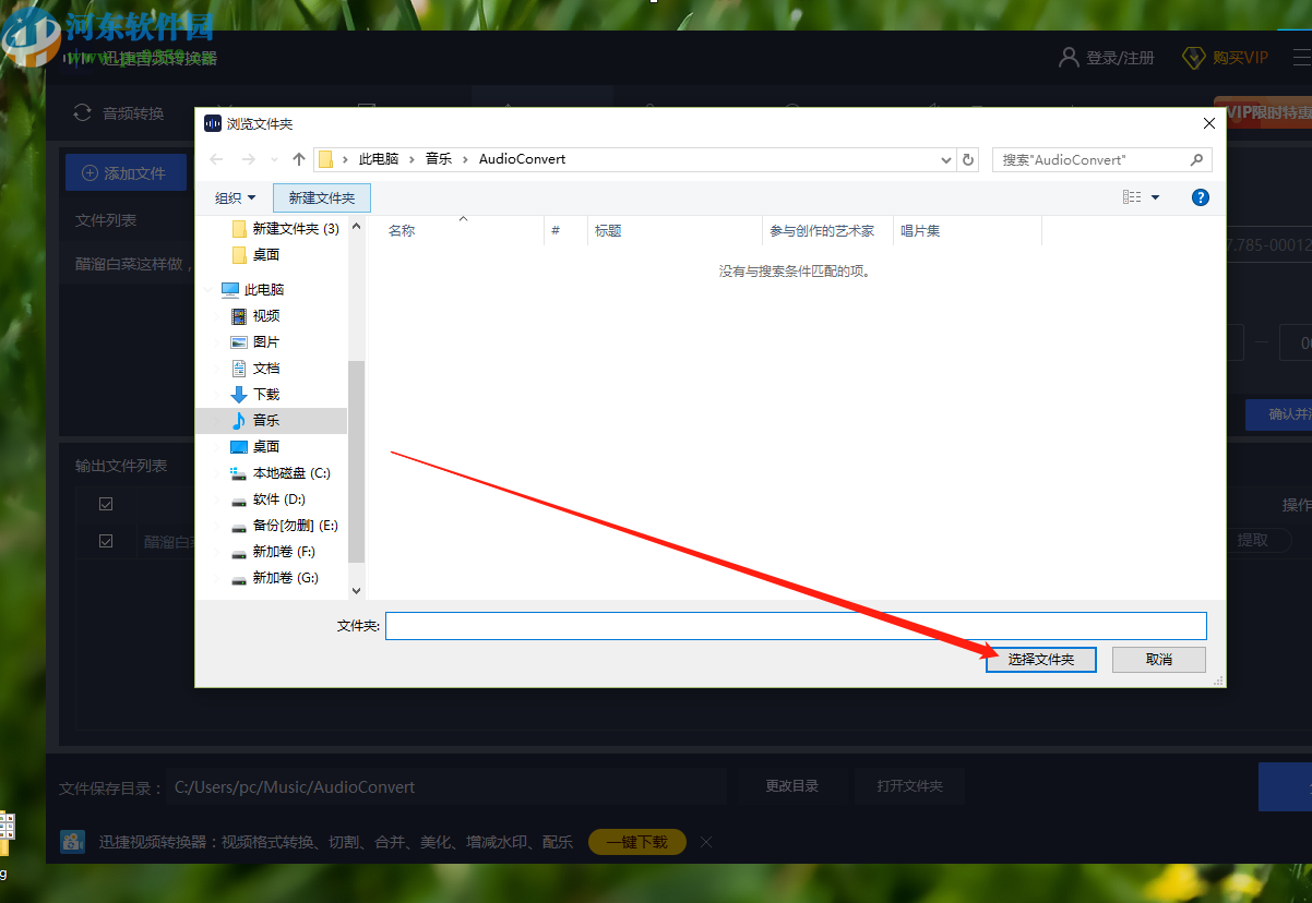 5.点击更改目录按钮之后出现一个选择文件的界面,我们自定义选择想要保存文件的文件夹之后点击选择文件夹按钮。