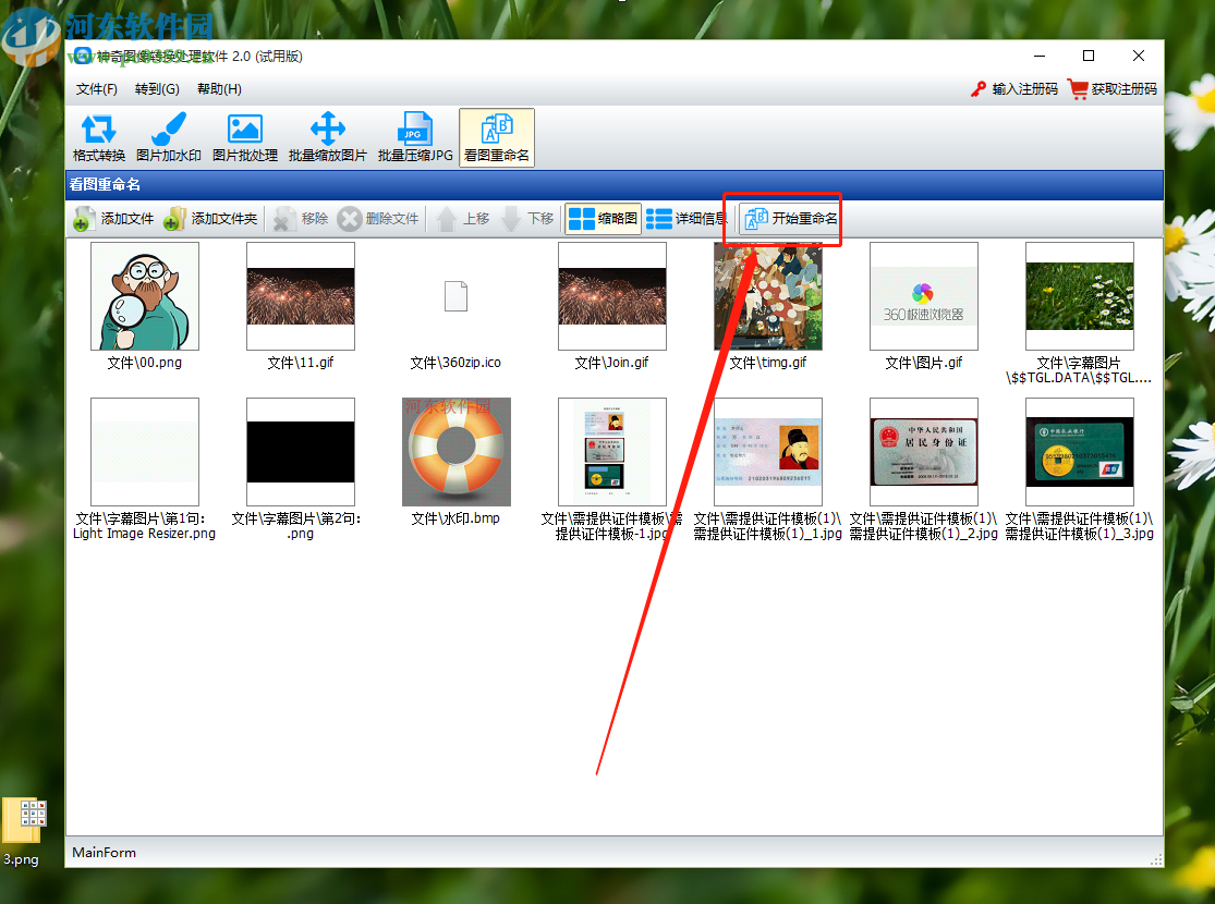 3.点击确定按钮之后我们在界面中就可以看到文件夹中识别出来的图片文件了,然后我们点击上方的开始重命名按钮。