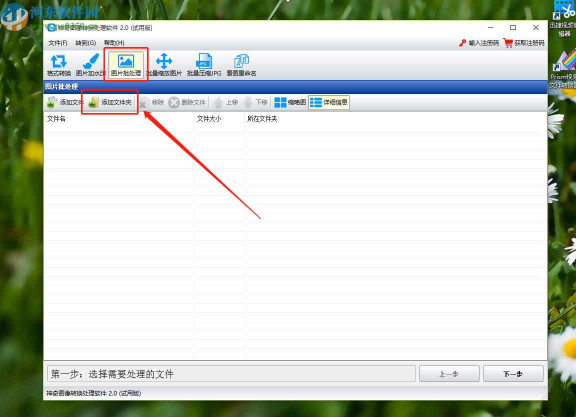 1.首先第一步我们打开软件之后,在软件中选择图片批处理功能,然后点击添加文件夹按钮。