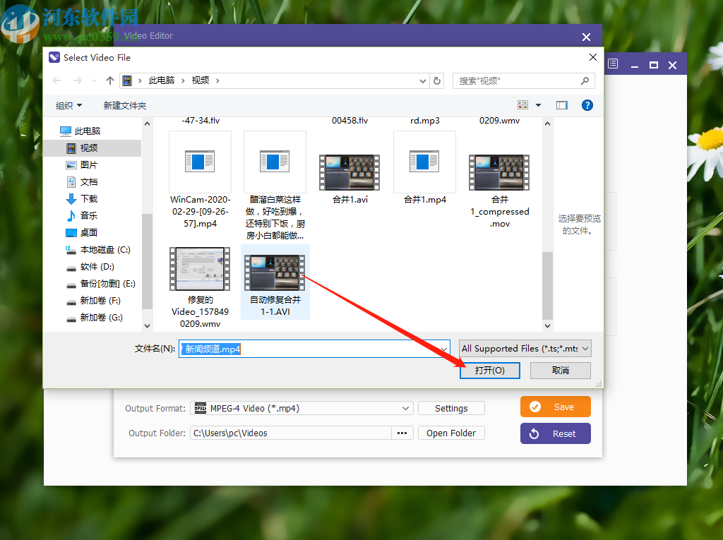 3.点击添加文件按钮之后下一步在出现的选择文件界面中选中想要剪切的视频之后,点击右下角的打开按钮。
