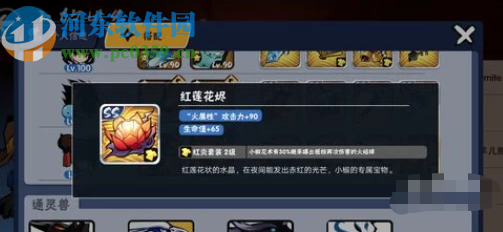 1.首先是红炎套装1,这个是SS级的宝物红莲花烬,得到之后可以增加火属性的攻击力90个点,生命值也可以增加65点。