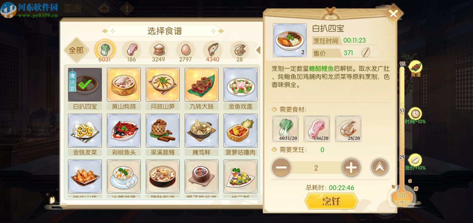 3.还有一个方面就是在食谱上,游戏中会有不同的宴会或者是庙会,到时候需要的食谱也是不一样的,要注重区别两种餐桌的食谱。