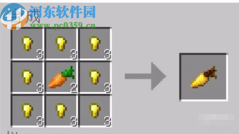2.然后下一步就是在土地里面种植胡萝卜了,等到成熟之后把胡萝卜全部收割,然后将胡萝卜放到操作台中,在他的周围再围上一圈金粒,最后制作出金胡萝卜。