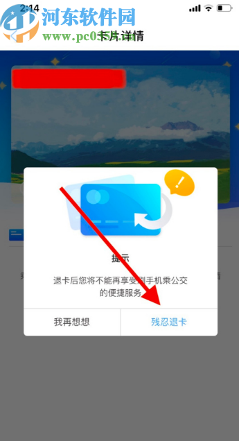 6.点击退卡申请之后界面中会出现一个提示,表示退卡之后将不再享用这个这张公交卡的便捷服务,点击残忍退卡即可完成操作。