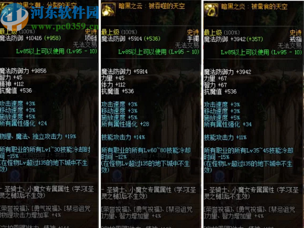 4.最后一个是天空套装,它主要就是用来减少技能CD的特色装备,对于一些续航型职业来说就是必备的一套装备了,有了天空套装之后能够更好的发挥。