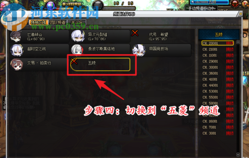 4.打开频道面板之后在界面中我们就可以看到特殊区域中的五陵频道了,然后我们点击进行切换。