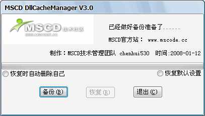 MSCD DllCacheManager 3.0┊最快备份还原CHACHE文件工具┊简体中文绿色免费版