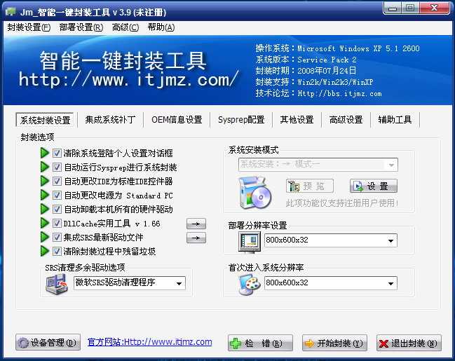 *保持原来的智能一键封装工具3.0的所有功能,在此基础上修正了一些的bug,并且添加了最新的一些元素,完美支持XP sp3;