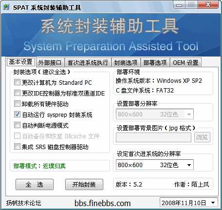 1、本工具实现一键封装系统,并提供了丰富的封装和部署选项,使封装系统更加人性化。支持封装 Windows XP SP1/SP2/SP3。
