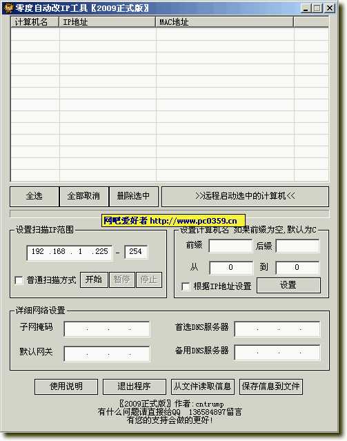 零度自动批量设置IP工具2009 绿色最终版(网吧必备)