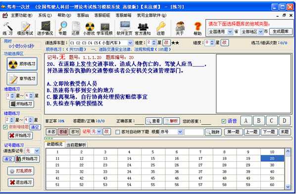 驾考一次过是一款驾照考试测试练习工具,题库采用的是2012年公安部发布的最新题库(包括酒驾醉驾题);包含(小车725题,货车793题,客车782题,轮式自行机械775题)、摩托车版共420题、恢复驾驶版共450题。功能全面强大,有:练习、模拟考试、进步情况、专题、解析等功能,特别是增加了:难度星级功能,以及根据您做题的情况自动设置错误星级,加强易错题的练习,每道题皆有详细的解析,使您做到不但“知其然”并且“知其所以然”,同时对一些需要记忆的内容在解析和专题里都教您怎样去记,使您在做题时不会一直重复同样的错误!!