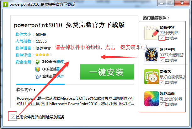 在高速下载器中,取消勾选解除不需要安装的项目,点击“一键安装”!